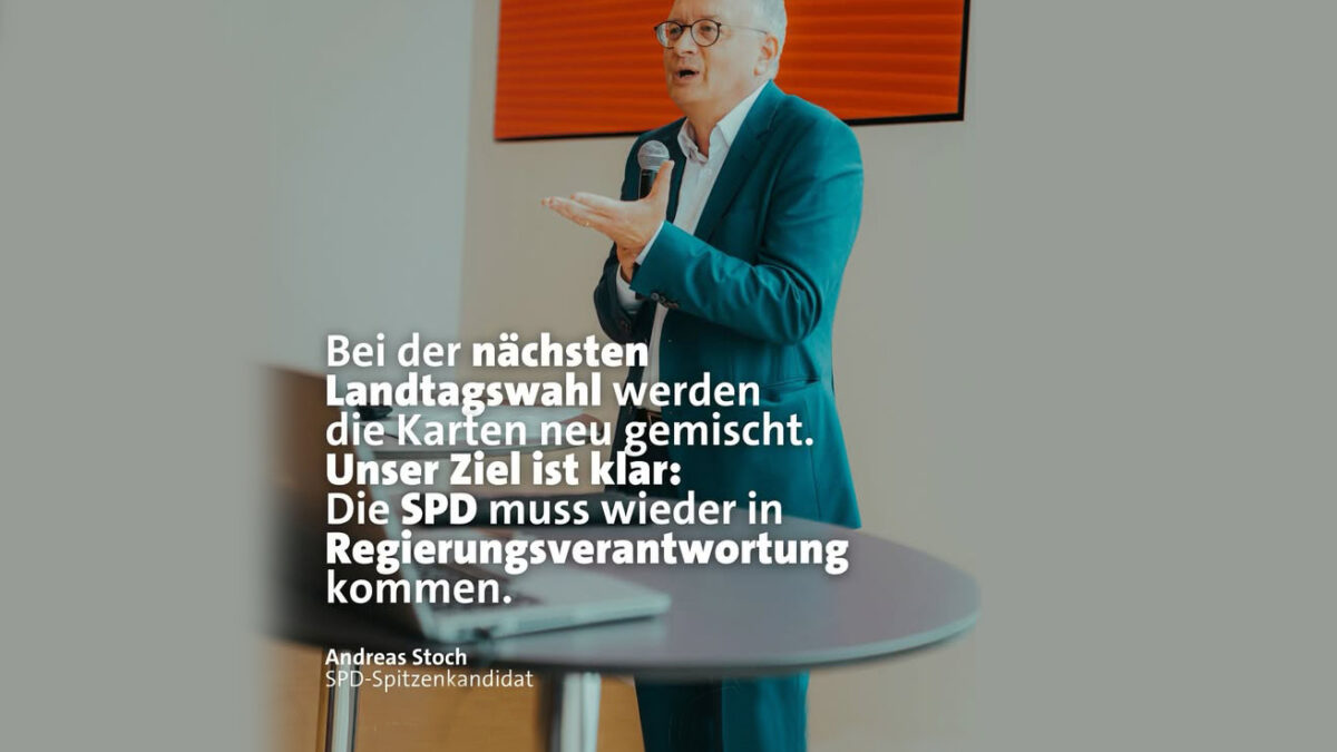 Wir wollen wieder Regierungsverantwortung übernehmen. Und jetzt ist klar: Mit unserem Spitzenkandidaten Andreas Stoch. Bei der nächsten Landtagswahl werden die Karten neu gemischt. Die Menschen wollen, dass sich was dreht in diesem Land. Auf nie dagewesene Herausforderungen können wir nicht mit politischen Instrumenten von vorgestern antworten. Die Menschen wollen Lösungen. Und wir haben die Lösungen.