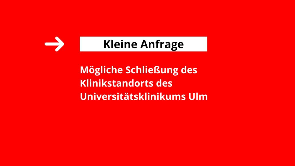In einer Kleinen Anfrage bat ich die Landesregierung um die Beantwortung von sechs Fragen. Mögliche Schließung des Klinikstandorts Michelsberg des Universitätsklinikums Ulm Ich frage die Landesregierung: […]