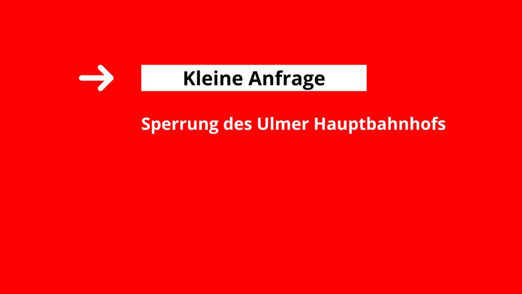 In einer Kleinen Anfrage habe ich das Ministerium um die Beantwortung dieser sechs Fragen gebeten: 1. Was ist ihr über die komplette Sperrung des Ulmer Hauptbahnhofs […]
